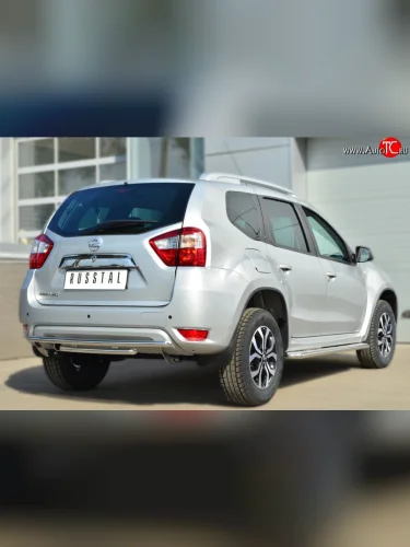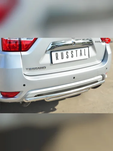 Защита заднего бампера (2 трубы Ø42 мм, нержавейка) SLITKOFF Nissan Terrano D10 дорестайлинг (2013-2016) в Самаре Самарской области