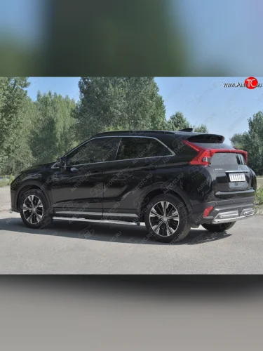 Защита заднего бампера (2 трубы Ø63 и 42 мм, нержавейка) SLITKOFF Mitsubishi Eclipse Cross GK дорестайлинг (2017-2021) в Самаре Самарской области