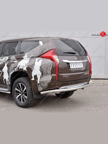 Защита заднего бампера (Ø63 мм, нержавейка) SLITKOFF Mitsubishi Pajero Sport QE дорестайлинг (2015-2021) в Самаре Самарской области