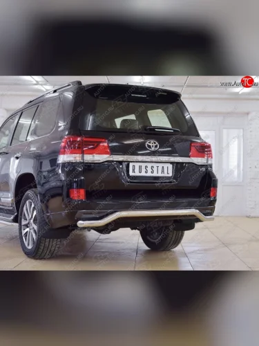 Защита заднего бампера (Ø63 мм волна, нержавейка) SLITKOFF Toyota Land Cruiser 200 2-ой рестайлинг (2015-2021) в Самаре Самарской области