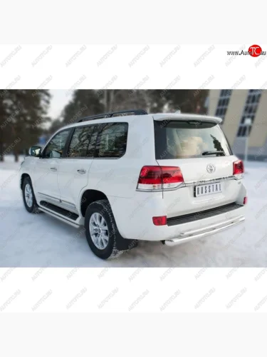 Защита заднего бампера (Ø76 дуга/42 дуга+декор паз, нержавейка) SLITKOFF Toyota Land Cruiser 200 2-ой рестайлинг (2015-2021) в Самаре Самарской области
