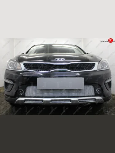 Защитная сетка радиатора в бампер (ячейка 3х7 мм, верх) Стрелка11 Стандарт KIA Rio X-line (2017-2021) (хром) в Самаре Самарской области