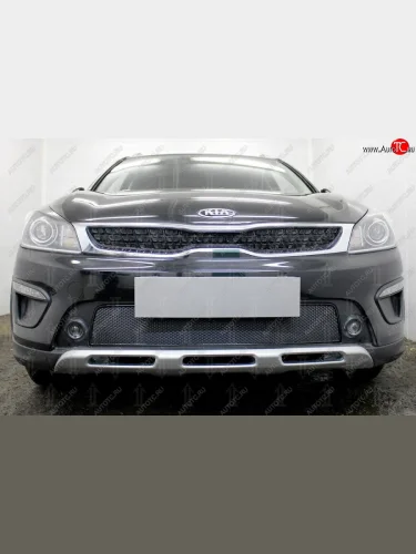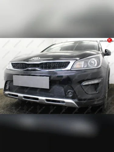 Защитная сетка радиатора в бампер (ячейка 4х10 мм, верх) Стрелка11 Премиум KIA Rio X-line (2017-2021) (черная) в Самаре Самарской области