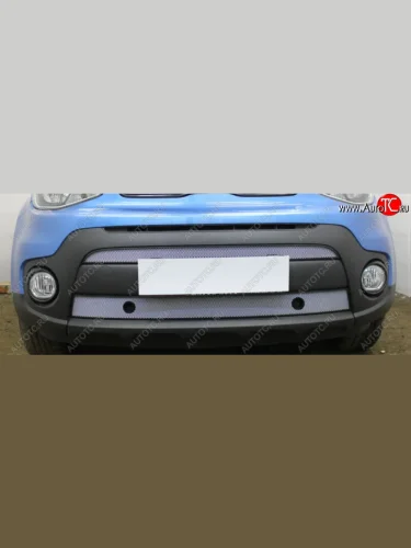 Защитная сетка в бампер (2 части, с парктроником, ячейка 3х7 мм) Alfeco Стандарт KIA Soul PS рестайлинг (2017-2019) (Хром) в Самаре Самарской области