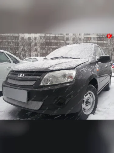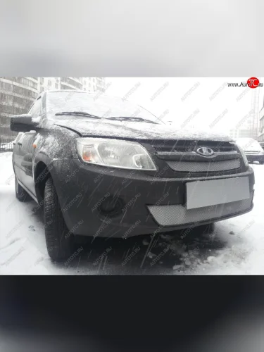 Защитная сетка в бампер (2 части, ячейка 3х7 мм) Alfeco Стандарт Лада ВАЗ Гранта (2011-2017) 2190 (Хром) в Самаре Самарской области