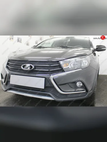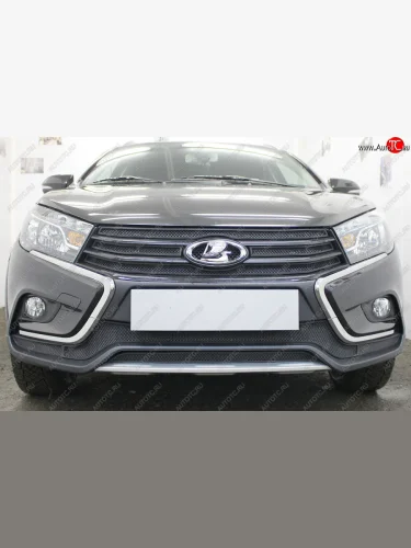 Защитная сетка в бампер (низ, 2 части, ячейка 3х7 мм) Alfeco Стандарт Лада ВАЗ Веста SW 2181 универсал дорестайлинг (2017-2022) (Чёрная) в Самаре Самарской области