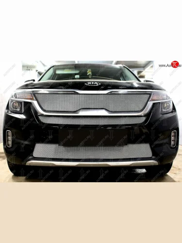 Защитная сетка в бампер (низ, с датчиком SCC, ячейка 3х7 мм) Alfeco Стандарт KIA Seltos (2019-2022) SP2 (Хром) в Самаре Самарской области
