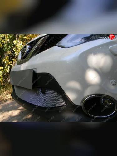Защитная сетка в бампер (низ, с парктроником, ячейка 3х7 мм) Стрелка11 Стандарт Nissan Qashqai 2 J11 дорестайлинг (2013-2019) (Хром) в Самаре Самарской области