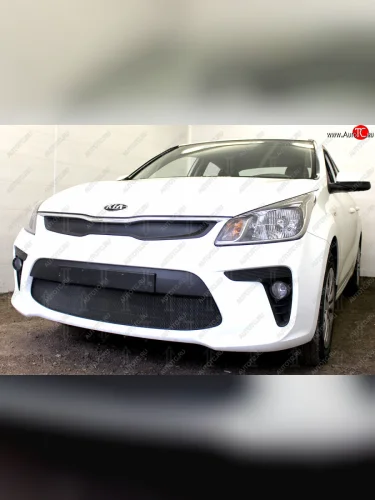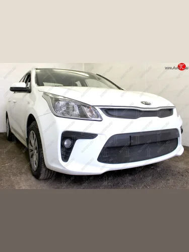Защитная сетка в бампер (низ, ячейка 3х7 мм) Alfeco Стандарт KIA Rio 4 FB дорестайлинг седан (2016-2020) (Чёрная) в Самаре Самарской области