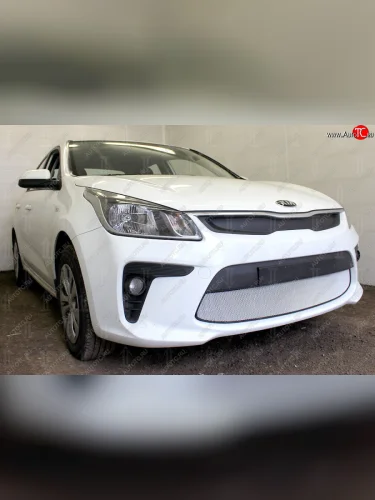 Защитная сетка в бампер (низ, ячейка 3х7 мм) Alfeco Стандарт KIA Rio 4 FB дорестайлинг седан (2016-2020) (Хром) в Самаре Самарской области