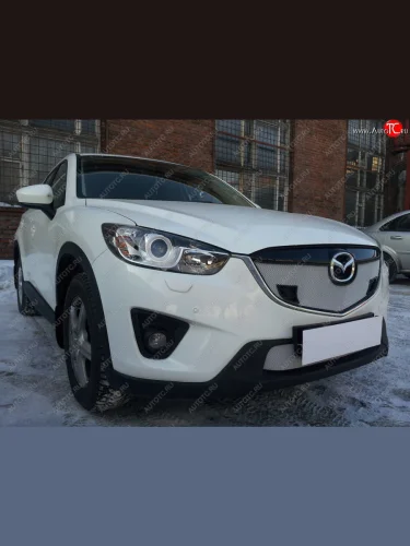 Защитная сетка в бампер (низ, ячейка 3х7 мм) Alfeco Стандарт Mazda CX-5 KE дорестайлинг (2011-2014) (Хром) в Самаре Самарской области
