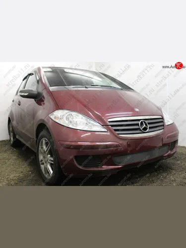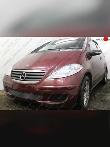Защитная сетка в бампер (низ, ячейка 3х7 мм) Alfeco Стандарт Mercedes-Benz A class (2005-2008) W169 (Чёрная) в Самаре Самарской области