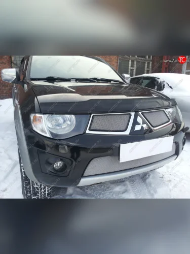 Защитная сетка в бампер (низ, ячейка 3х7 мм) Alfeco Стандарт Mitsubishi L200 4, Pajero Sport PB (Хром) в Самаре Самарской области