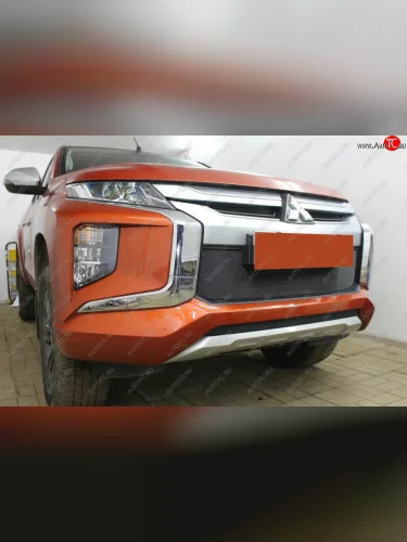 Защитная сетка в бампер (низ, ячейка 3х7 мм) Alfeco Стандарт Mitsubishi L200 5 KK,KL рестайлинг (2018-2022) (Чёрная) в Самаре Самарской области