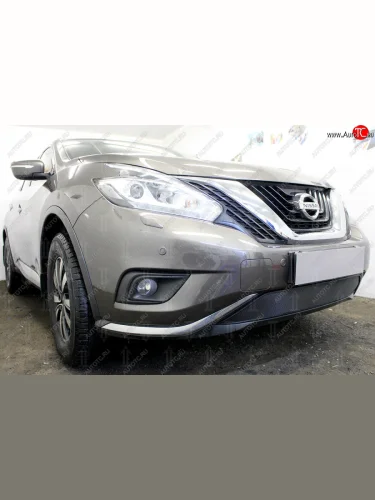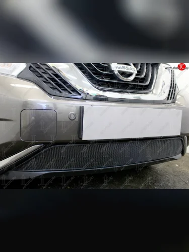Защитная сетка в бампер (низ, ячейка 3х7 мм) Стрелка11 Стандарт Nissan Murano 3 Z52 дорестайлинг (2015-2022) (Чёрная) в Самаре Самарской области
