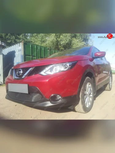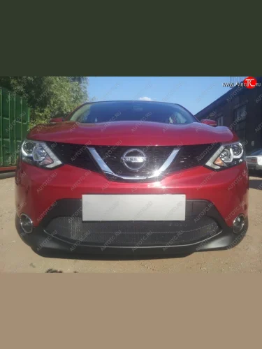 Защитная сетка в бампер (низ, ячейка 3х7 мм) Стрелка11 Стандарт Nissan Qashqai 2 J11 дорестайлинг (2013-2019) (Чёрная) в Самаре Самарской области