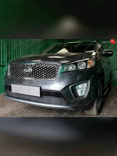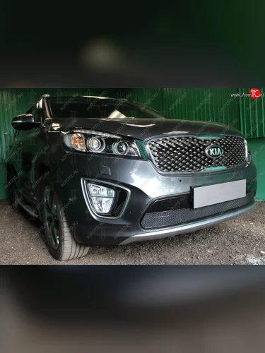 Защитная сетка в бампер (низ, ячейка 4х10 мм) Alfeco Премиум KIA Sorento UM/Prime дорестайлинг (2014-2018) (Чёрная) в Самаре Самарской области