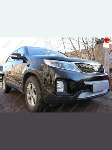 Защитная сетка в бампер (низ, ячейка 4х10 мм) Alfeco Премиум KIA Sorento XM рестайлинг (2012-2015) (Хром) в Самаре Самарской области
