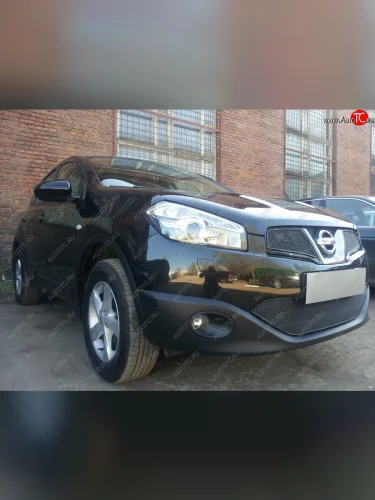 Защитная сетка в бампер (низ, ячейка 4х10 мм) Стрелка11 Премиум Nissan Qashqai 1 J10 рестайлинг (2010-2013) (Чёрная) в Самаре Самарской области