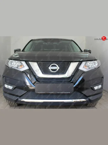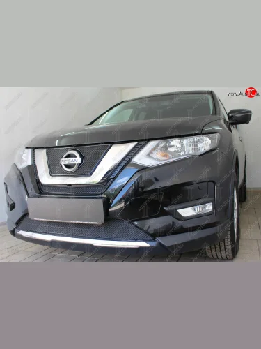 Защитная сетка в бампер (низ, ячейка 4х10 мм) Стрелка11 Премиум Nissan X-trail 3 T32 рестайлинг (2017-2022) (Чёрная) в Самаре Самарской области