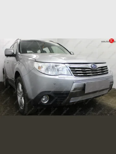 Защитная сетка в бампер (низ, ячейка 4х10 мм) Стрелка11 Премиум Subaru Forester SH (2008-2013) (Хром) в Самаре Самарской области