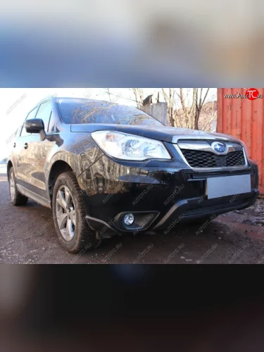 Защитная сетка в бампер (низ, ячейка 4х10 мм) Стрелка11 Премиум Subaru Forester SJ дорестайлинг (2012-2016) (Чёрная) в Самаре Самарской области