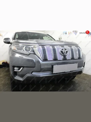 Защитная сетка в бампер (низ, ячейка 4х10 мм) Стрелка11 Премиум Toyota Land Cruiser Prado J150 3-ий рестайлинг (2020-2025) (Хром) в Самаре Самарской области