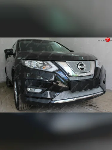 Защитная сетка в бампер (середина, ячейка 4х10 мм) Стрелка11 Премиум Nissan X-trail 3 T32 рестайлинг (2017-2022) (Хром) в Самаре Самарской области