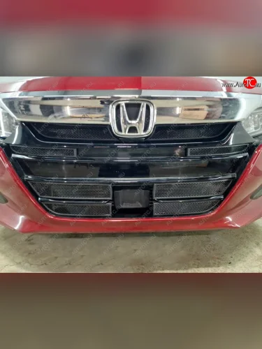 Защитная сетка в бампер (верх, 4 части, ячейка 3х7 мм) Alfeco Стандарт Honda Accord 10 CV (2019-2022) (Чёрная) в Самаре Самарской области