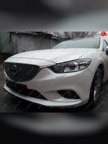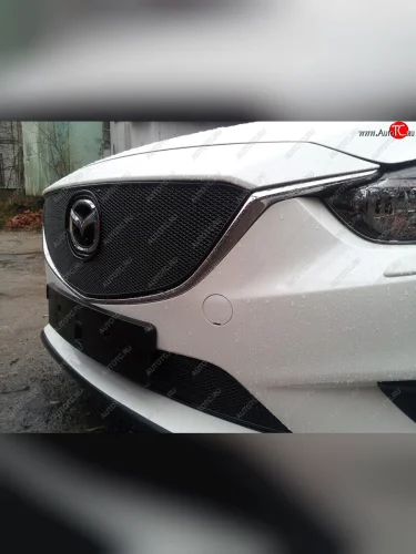 Защитная сетка в бампер (верх, ячейка 4х10 мм) Alfeco Премиум Mazda 6 GJ дорестайлинг универсал (2012-2015) (Чёрная) в Самаре Самарской области