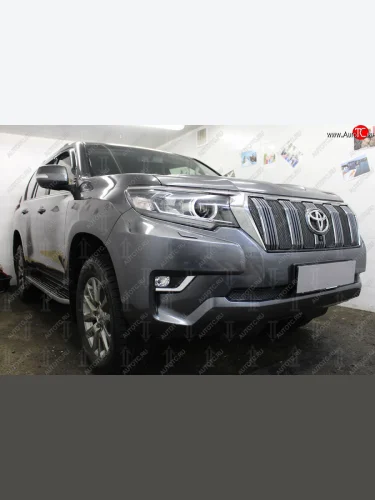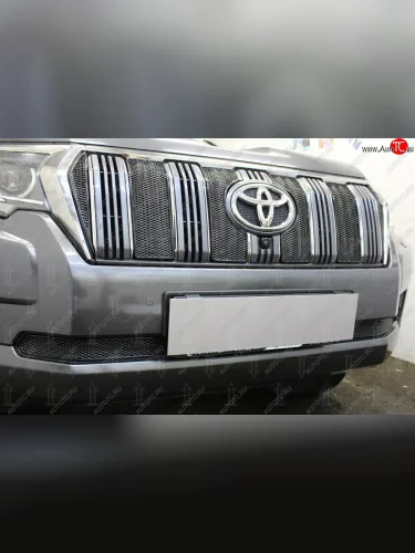 Защитная сетка в бампер (верх, ячейка 4х10 мм) Стрелка11 Премиум Toyota Land Cruiser Prado (2017-2025) J150 (Чёрная) в Самаре Самарской области