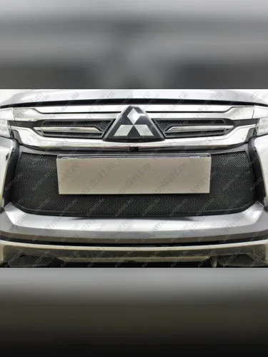 Зимняя заглушка решетки радиатора (низ) Стрелка11 Mitsubishi Pajero Sport QE дорестайлинг (2015-2021) (черная) в Самаре Самарской области