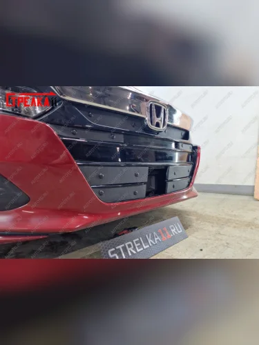 Зимняя заглушка решетки радиатора (верх 4 части) Стрелка11 Honda Accord 10 CV (2019-2022) (черная) в Самаре Самарской области