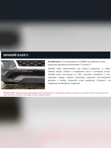| Наименование | Зимняя заглушка решетки радиатора (верх) Стрелка11 (черная) в Самаре Самарской области |